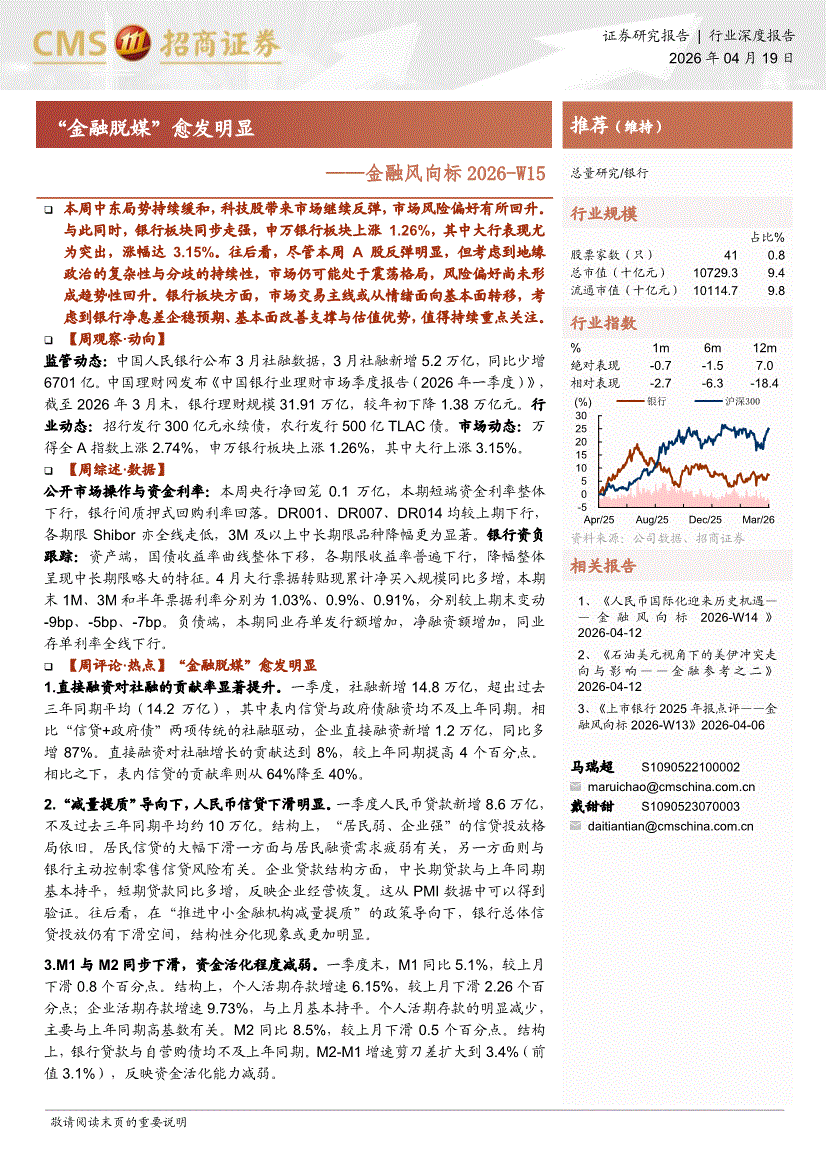 金融行业:招商证券-金融行业风向标2026~W15:“金融脱媒”愈发明显-260419