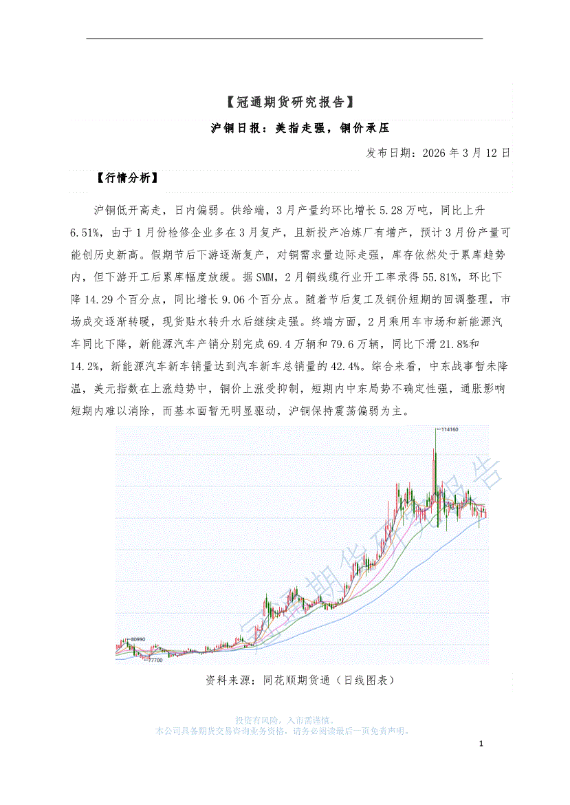 冠通期货-沪铜日报:美指走强,铜价承压-260312