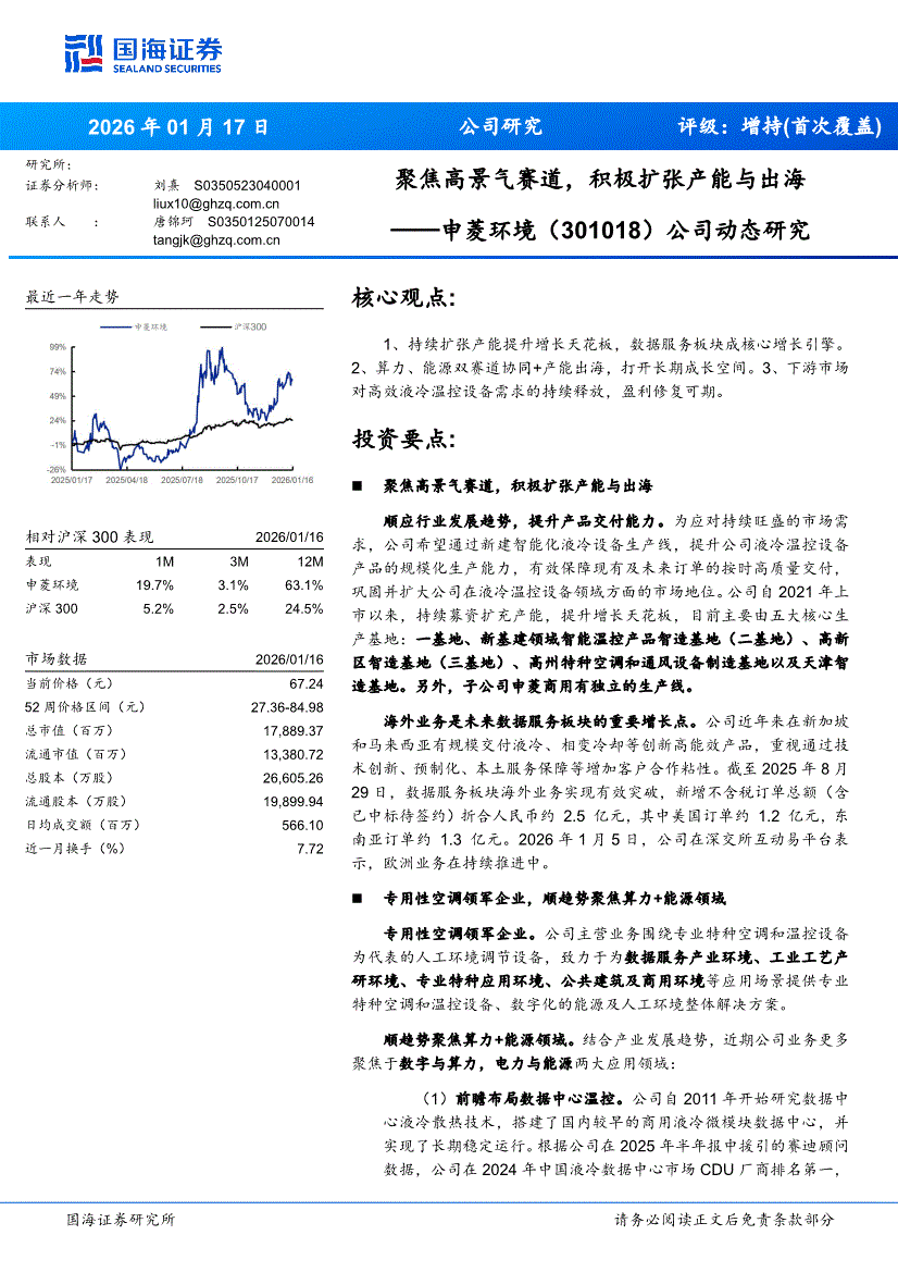 申菱环境:国海证券-申菱环境-301018-公司动态研究:聚焦高景气赛道,积极扩张产能与出海-260117