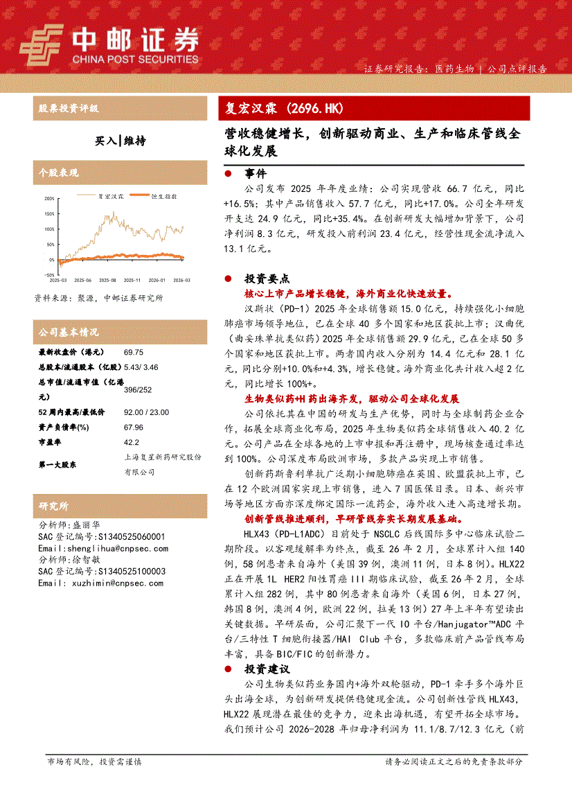 复宏汉霖:中邮证券-复宏汉霖-2696.HK-营收稳健增长,创新驱动商业、生产和临床管线全球化发展-260403