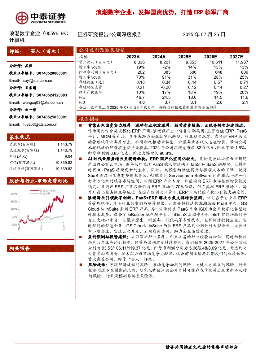 浪潮数字企业:中泰证券-浪潮数字企业-0596.HK-发挥国资优势,打造ERP领军厂商-250725