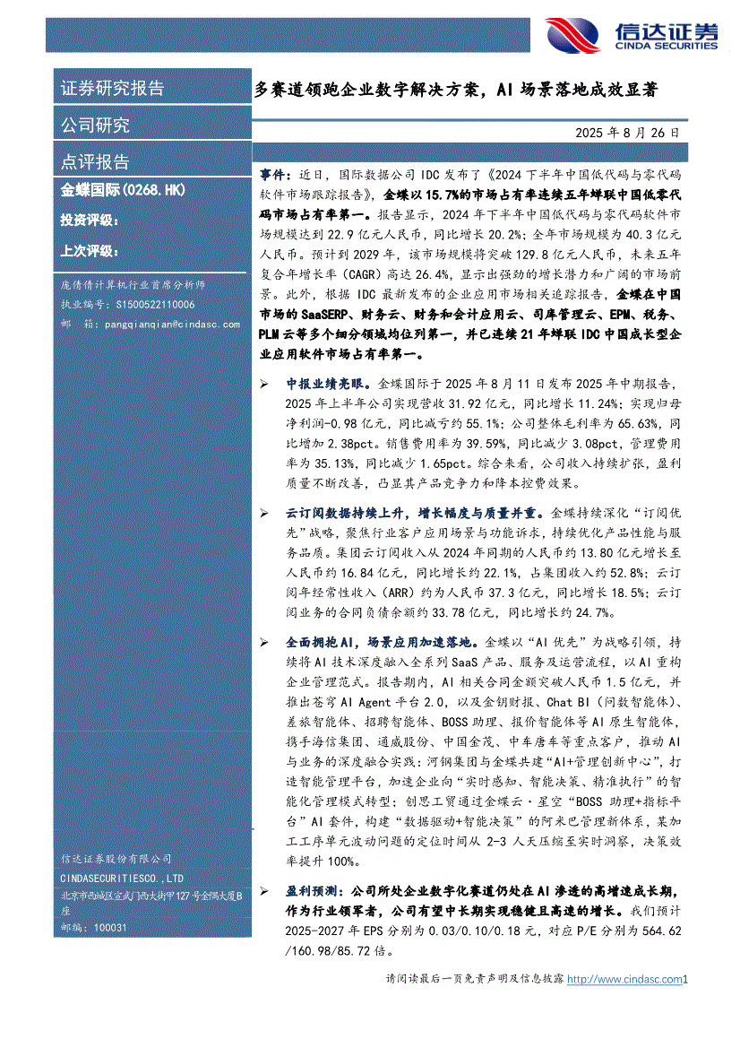 金蝶国际:信达证券-金蝶国际-0268.HK-多赛道领跑企业数字解决方案,AI场景落地成效显著-250826