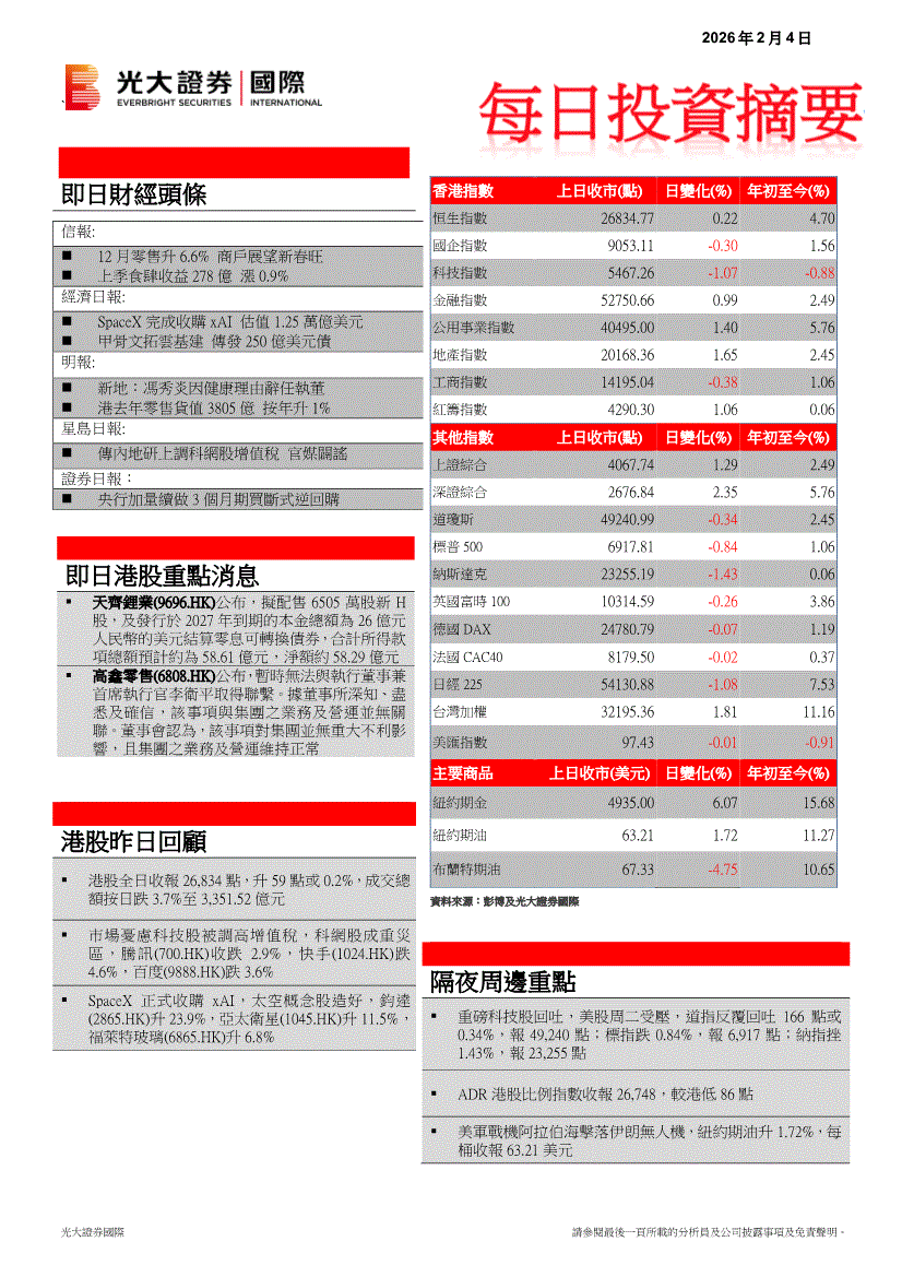 光大证券(国际)-每日投资摘要-260204