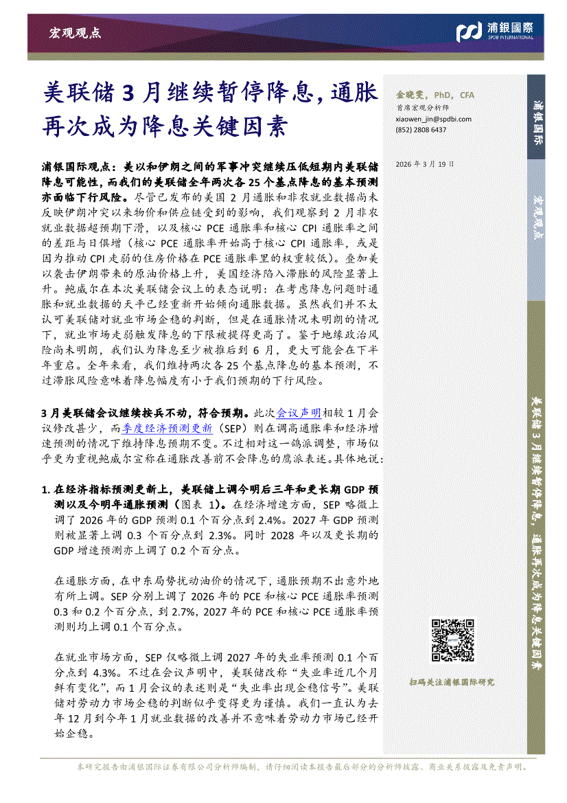 浦银国际-美联储3月继续暂停降息,通胀再次成为降息关键因素-260319