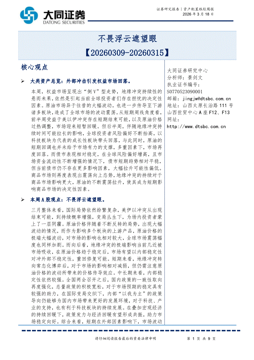 大同证券-资产配置跟踪周报:坚定信心,无惧市场浪疾风高-260310