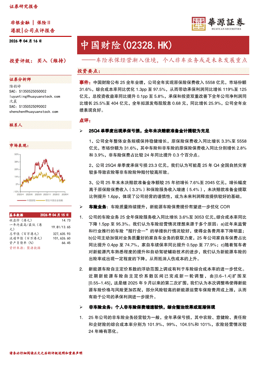 中国财险:华源证券-中国财险-2328.HK-车险承保经营渐入佳境,个人非车业务或是未来发展重点-260416
