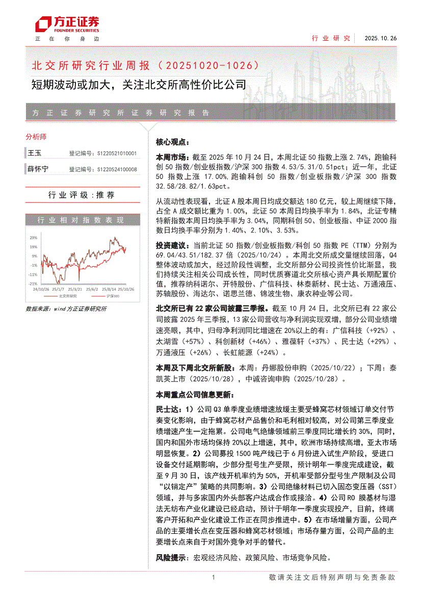 方正证券-北交所研究行业周报:短期波动或加大,关注北交所高性价比公司-251026