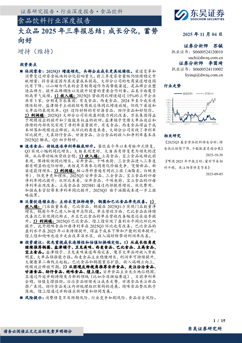 食品饮料行业:东吴证券-食品饮料行业深度报告:大众品2025年三季报总结,成长分化,蓄势向好-251104