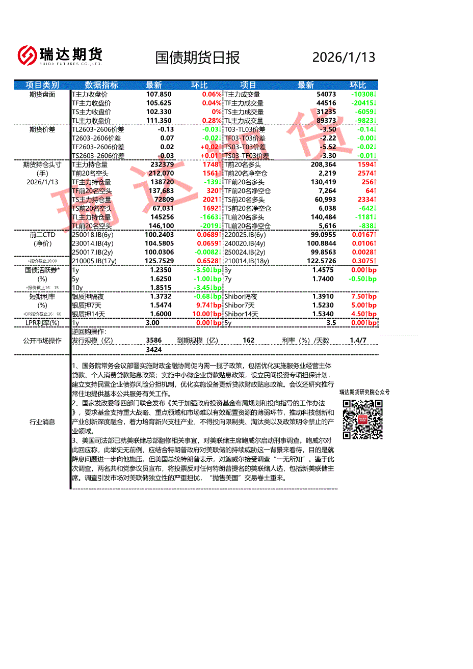 瑞达期货-国债期货日报-260113