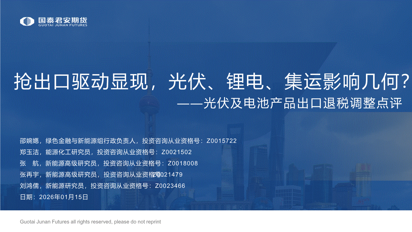 国泰君安期货-光伏及电池产品出口退税调整点评:抢出口驱动显现,光伏、锂电、集运影响几何?-260115