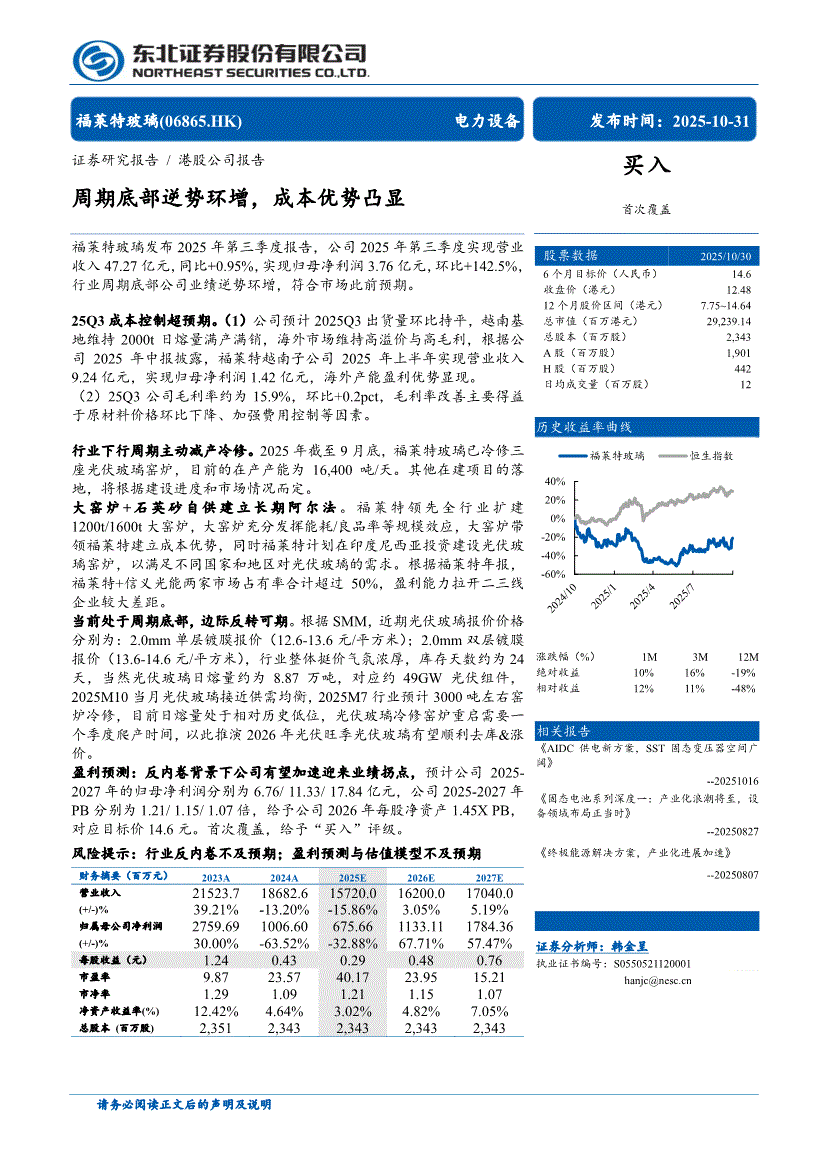 福莱特玻璃:东北证券-福莱特玻璃-6865.HK-周期底部逆势环增,成本优势凸显-251031