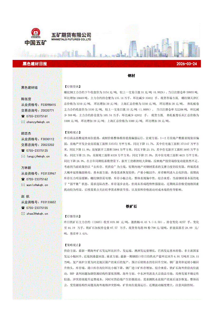 五矿期货-黑色建材日报-260324