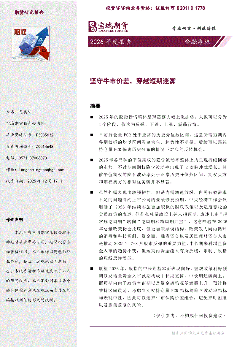 宝城期货-金融期权2026年度报告:坚守牛市价差,穿越短期迷雾-251217