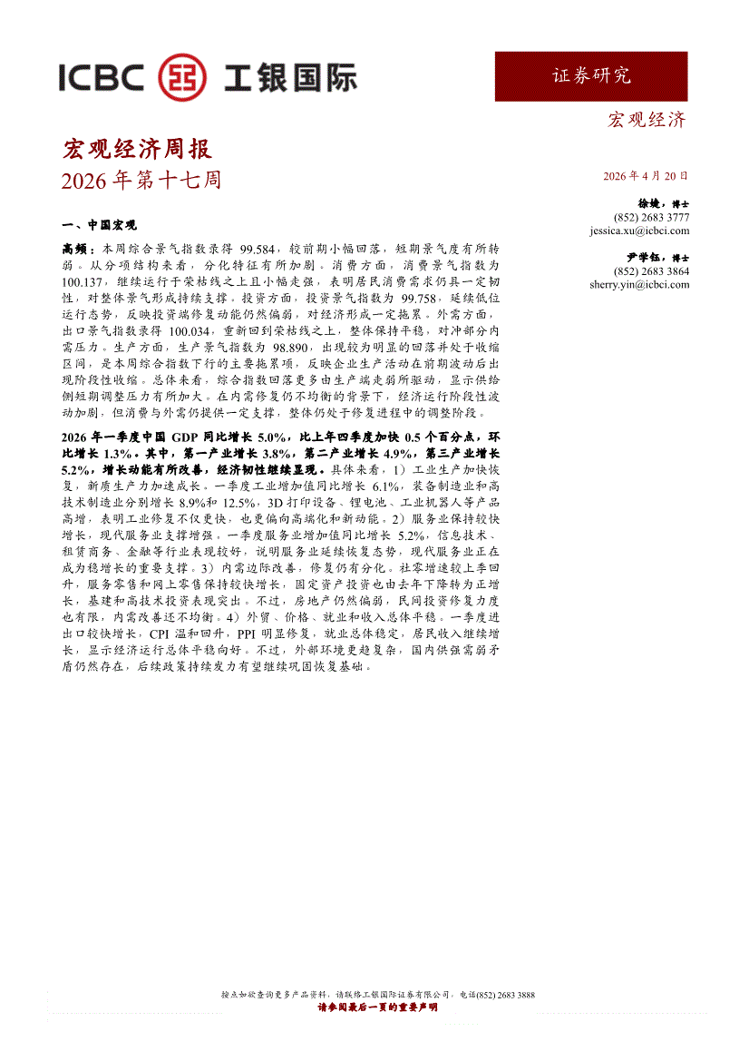 工银国际-宏观经济周报:2026年年第十七周-260420