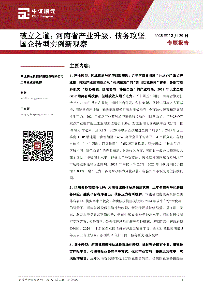中证鹏元资信评估股份有限公司-破立之道:河南省产业升级、债务攻坚及国企转型实例新观察-251229