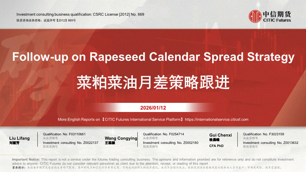 中信期货-菜粕菜油月差策略跟进-260112