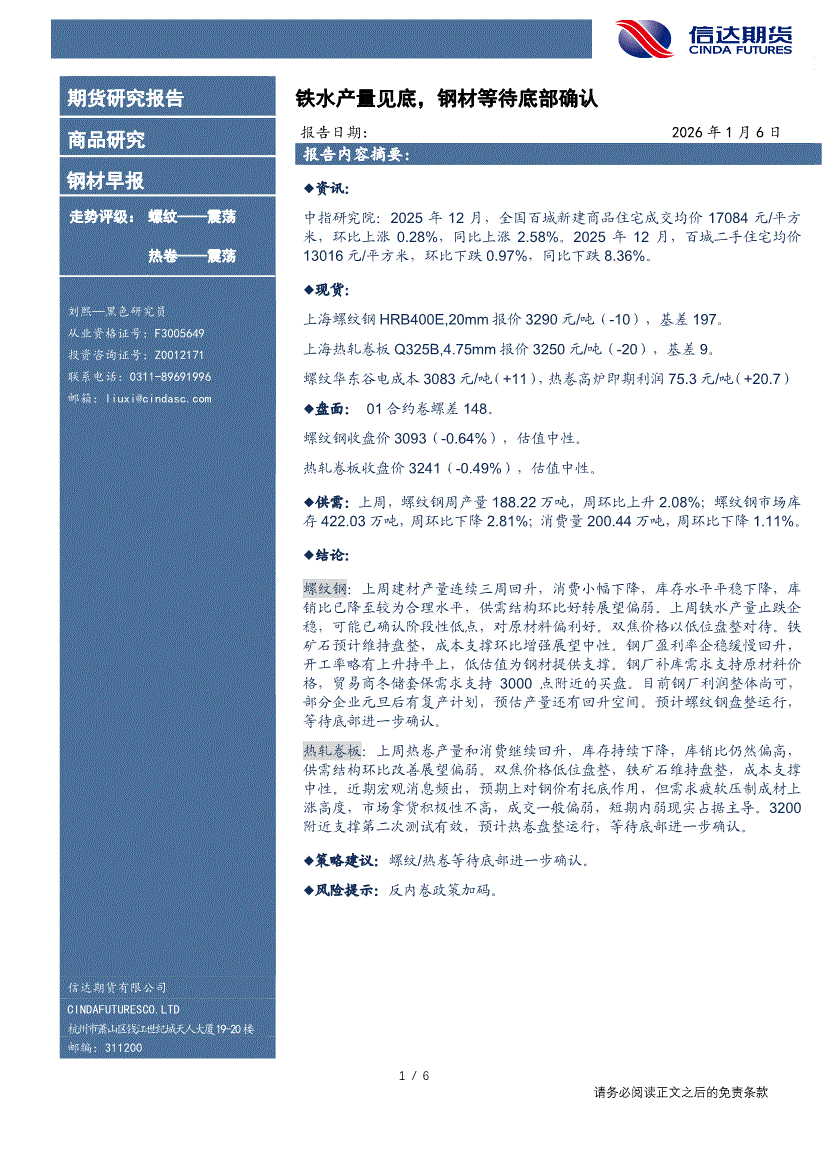 信达期货-钢材早报:铁水产量见底,钢材等待底部确认-260106