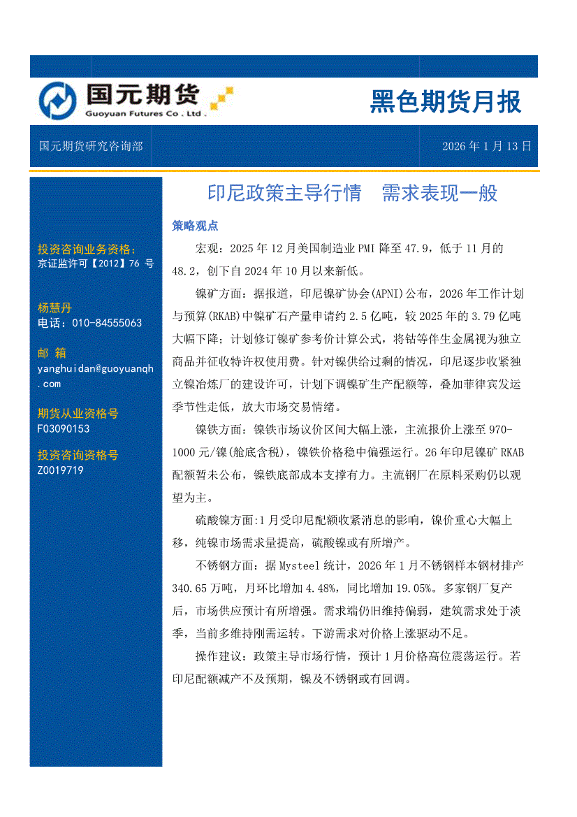 国元期货-黑色期货月报:印尼政策主导行情,需求表现一般-260123