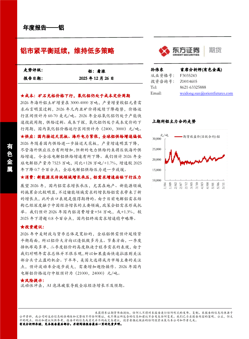 东证期货-铝年度报告:铝市紧平衡延续,维持低多策略-251226