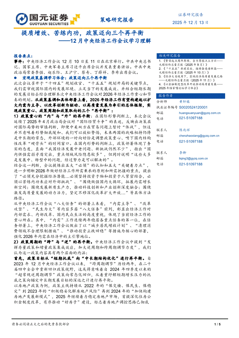 国元证券-12月中央经济工作会议学习理解:提质增效、苦练内功,政策迈向三个再平衡-251213