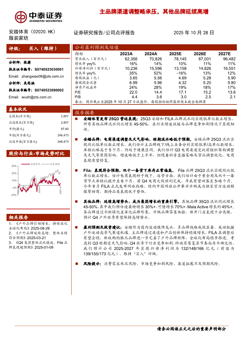 安踏体育:中泰证券-安踏体育-2020.HK-主品牌渠道调整略承压,其他品牌延续高增-251028