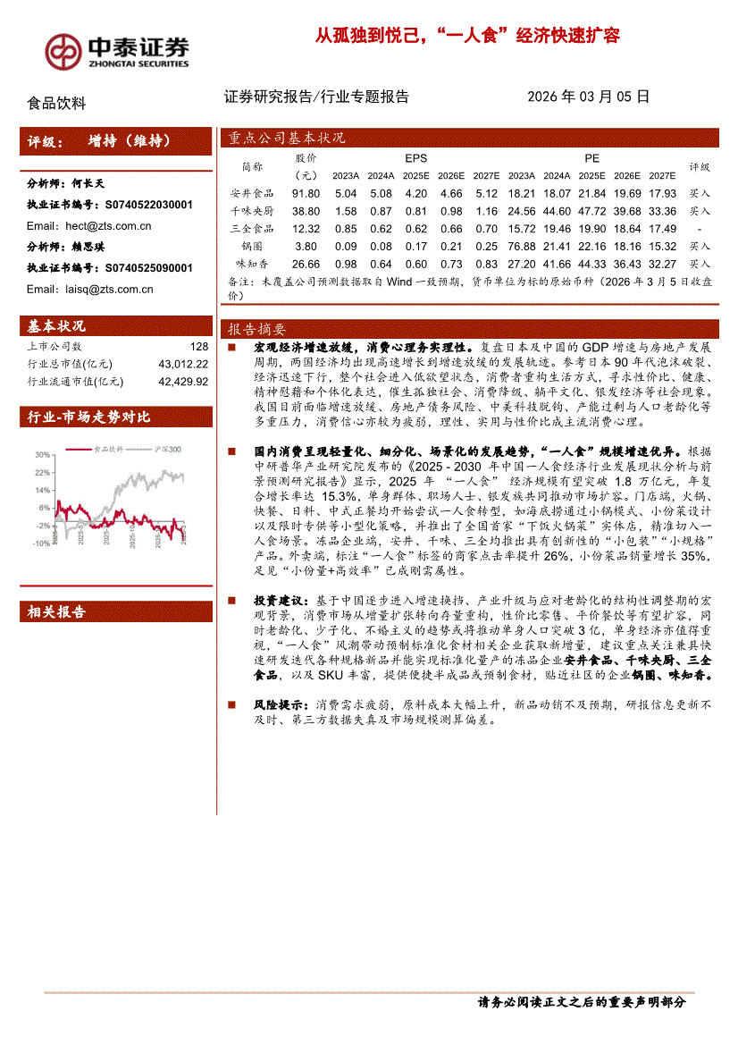 食品饮料行业:中泰证券-食品饮料行业:从孤独到悦己,“一人食”经济快速扩容-260305