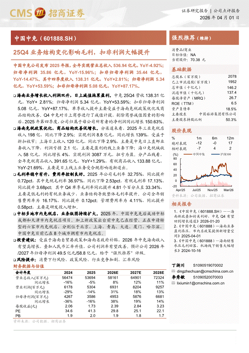 中国中免:招商证券-中国中免-601888-25Q4业务结构变化影响毛利,扣非利润大幅提升-260401