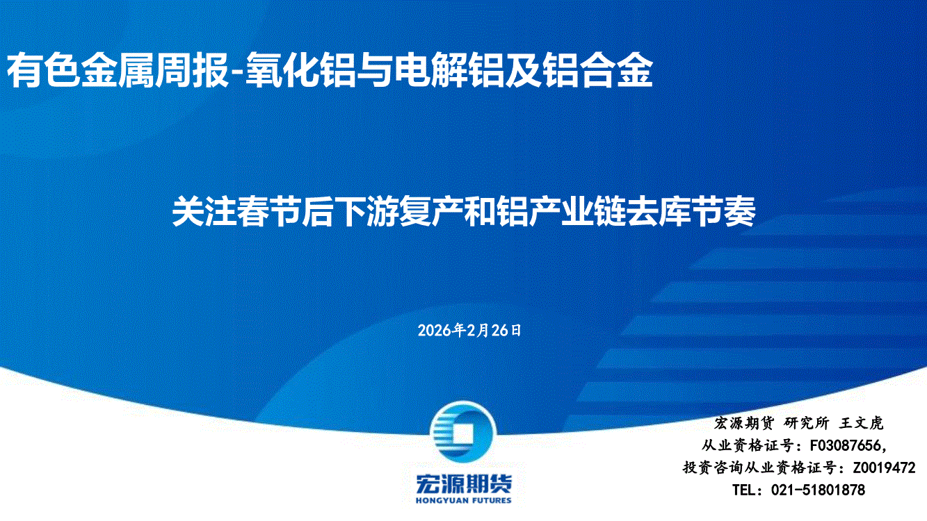 宏源期货-有色金属周报~氧化铝与电解铝及铝合金:关注春节后下游复产和铝产业链去库节奏-260226