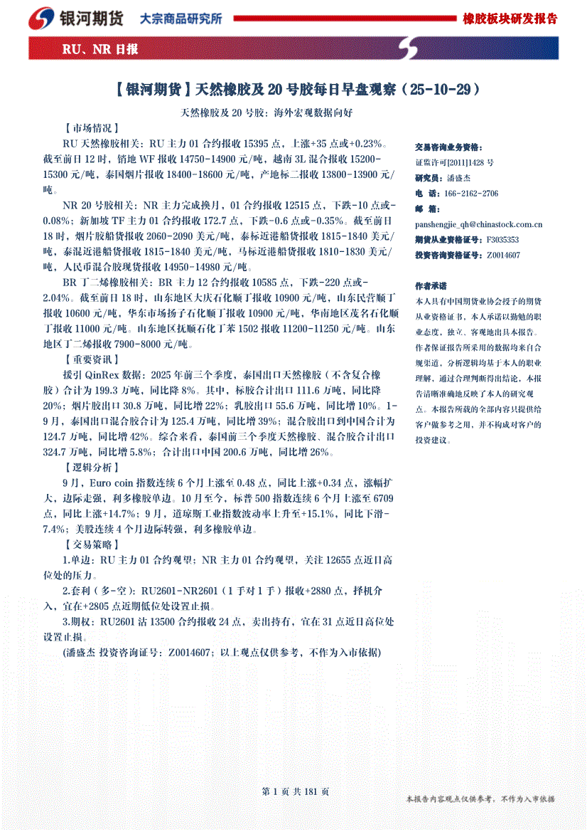 银河期货-天然橡胶及20号胶每日早盘观察-251031