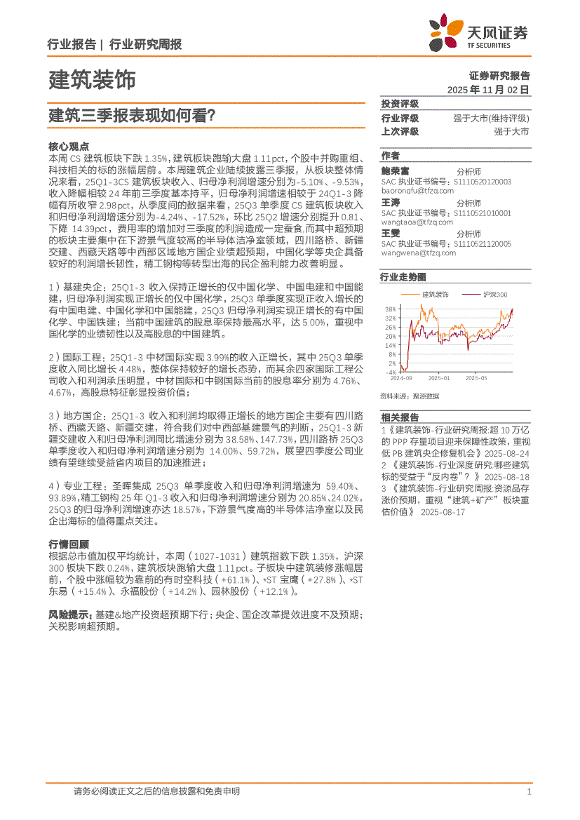 建筑装饰行业:天风证券-建筑装饰行业:建筑三季报表现如何看?-251102