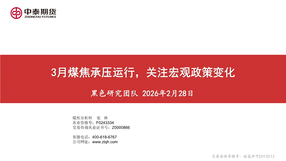 中泰期货-3月煤焦承压运行,关注宏观政策变化-260228
