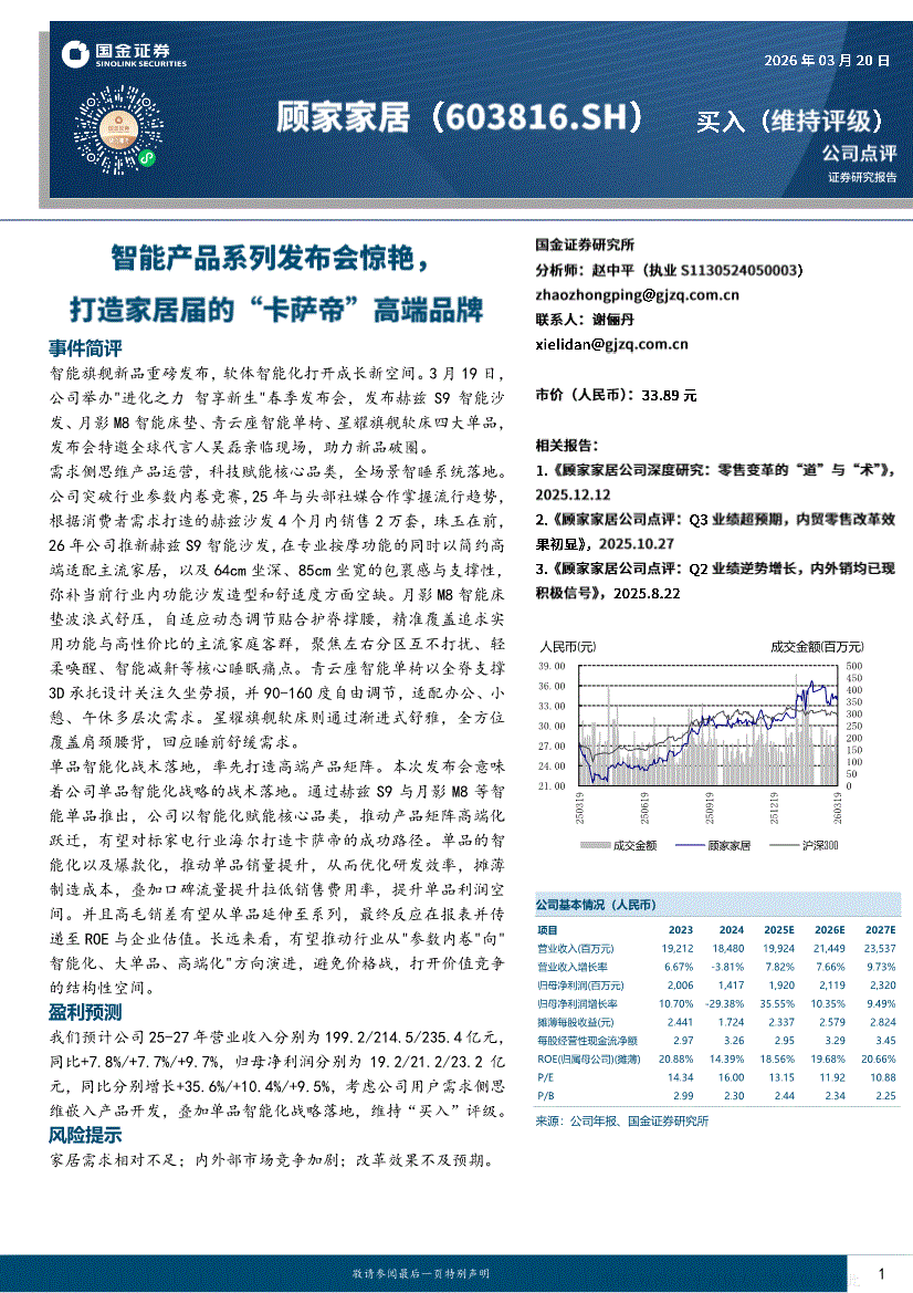 顾家家居:国金证券-顾家家居-603816-智能产品系列发布会惊艳,打造家居届的“卡萨帝”高端品牌-260320