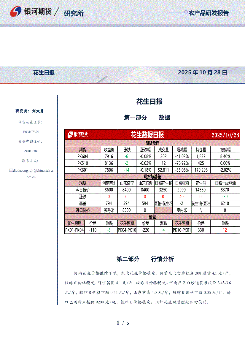 银河期货-花生10月报:河南花生大幅下跌,花生期货偏弱震荡-251029