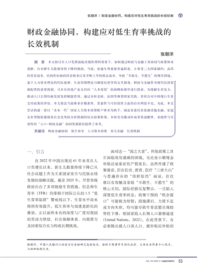 金融市场研究-财政金融协同,构建应对低生育率挑战的长效机制-251224