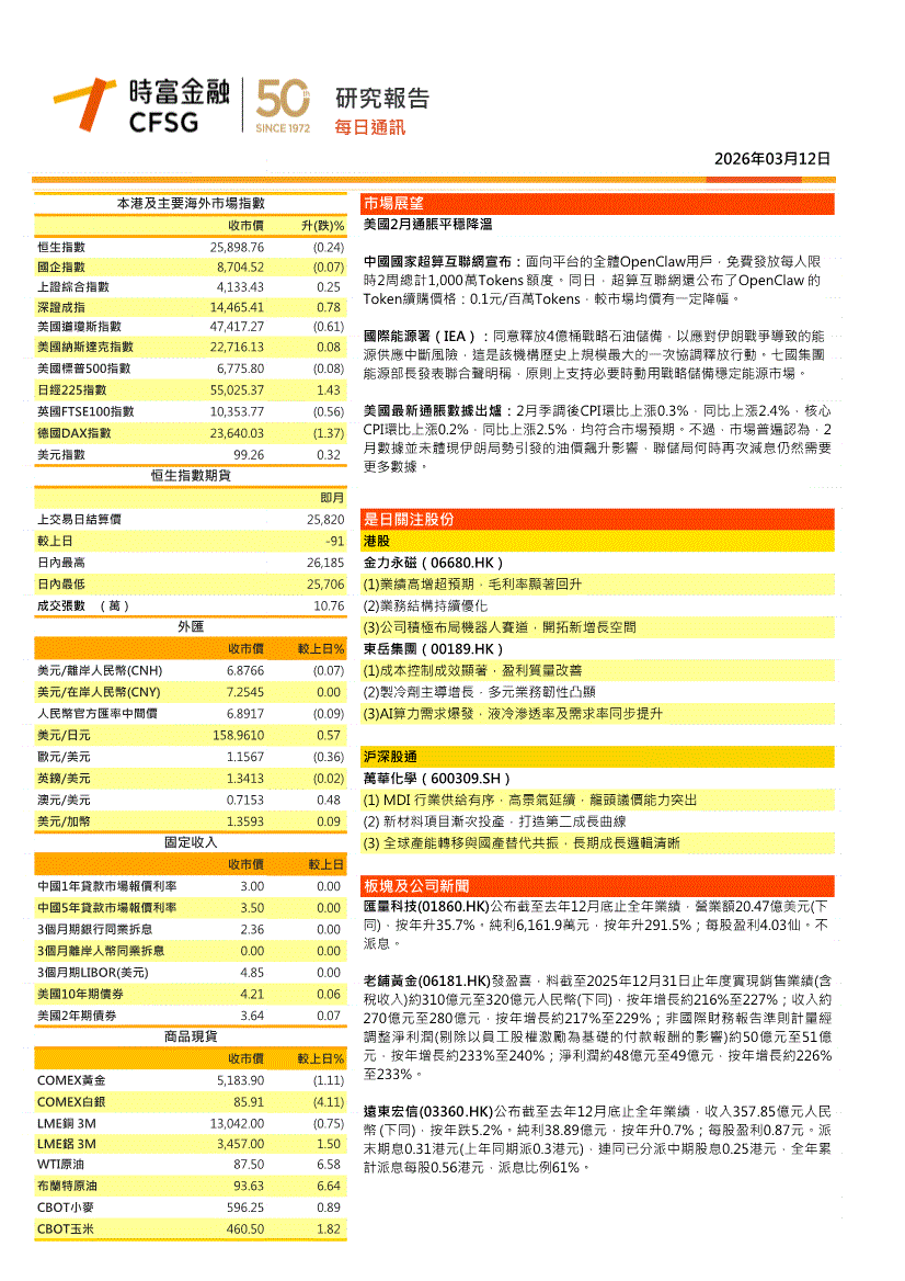 时富金融-每日通讯-260312