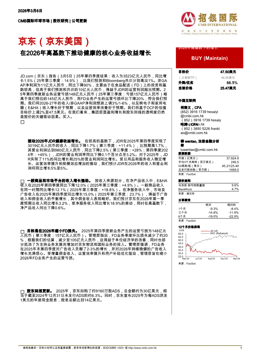 京东:招银国际-京东-JD.US-在2026年高基数下推动健康的核心业务收益增长(英译中)-260306