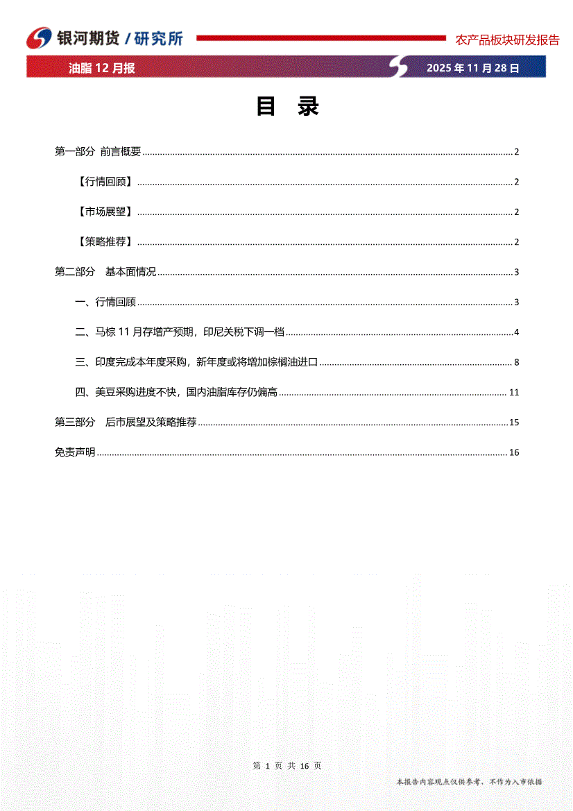 银河期货-油脂12月报:油脂缺乏利多驱动,短期或继续底部震荡-251128