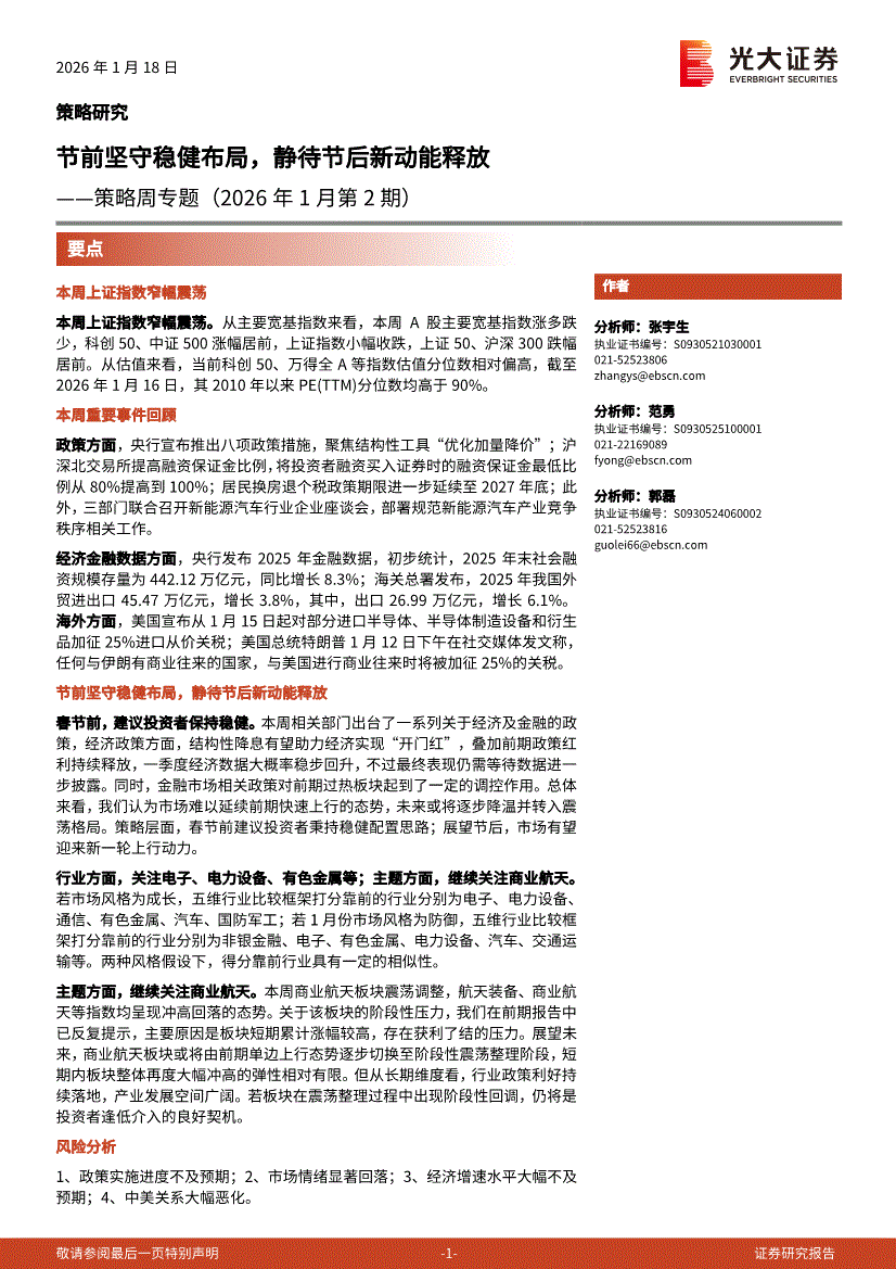光大证券-策略周专题(2026年1月第2期):节前坚守稳健布局,静待节后新动能释放-260118