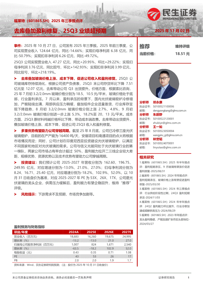 福莱特:民生证券-福莱特-601865-2025年三季报点评:去库叠加盈利修复,25Q3业绩超预期-251102