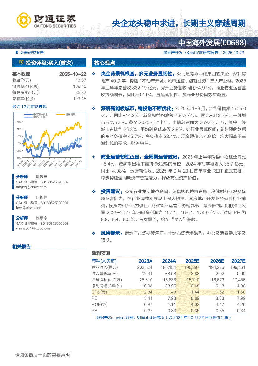 中国海外发展:财通证券-中国海外发展-0688.HK-央企龙头稳中求进,长期主义穿越周期-251023