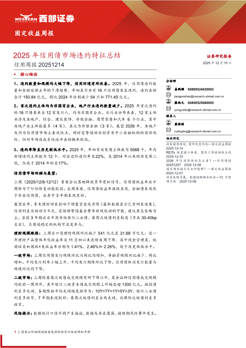 西部证券-信用周报:2025年信用债市场违约特征总结-251215