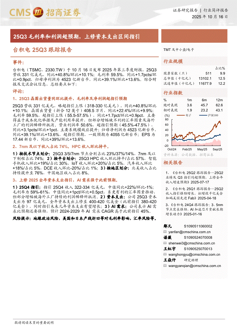 台积电:招商证券-台积电-2330.TW-25Q3跟踪报告:25Q3毛利率和利润超预期,上修资本支出区间指引-251016