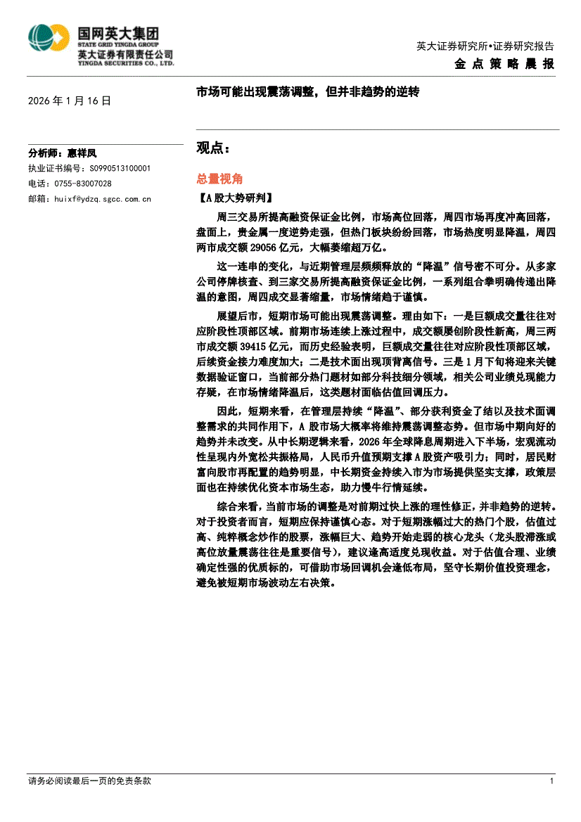英大证券-金点策略晨报-260116