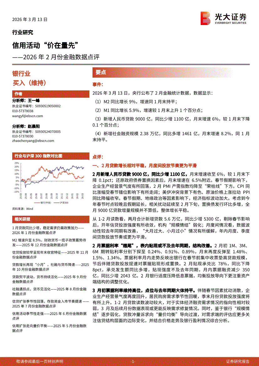 银行业:光大证券-银行业2026年2月份金融数据点评:信用活动“价在量先”-260313