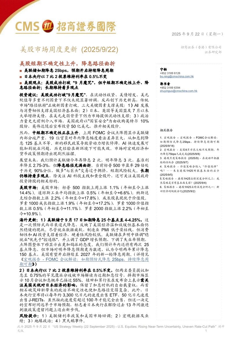 招商证券(香港)-美股市场周度更新:美股短期不确定性上升,降息路径曲折-250922
