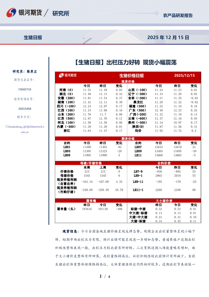 银河期货-【生猪日报】出栏压力好转,现货小幅震荡-251215