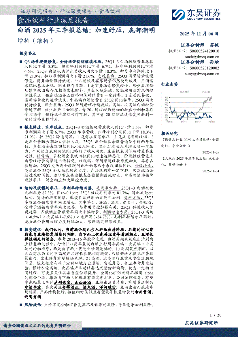 食品饮料行业:东吴证券-食品饮料行业深度报告:白酒2025年三季报总结,加速纾压,底部渐明-251106