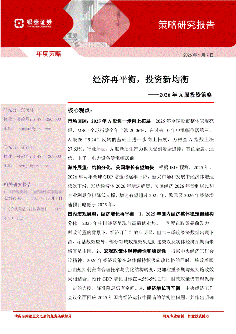 银泰证券-2026年A股投资策略:经济再平衡,投资新均衡-260107