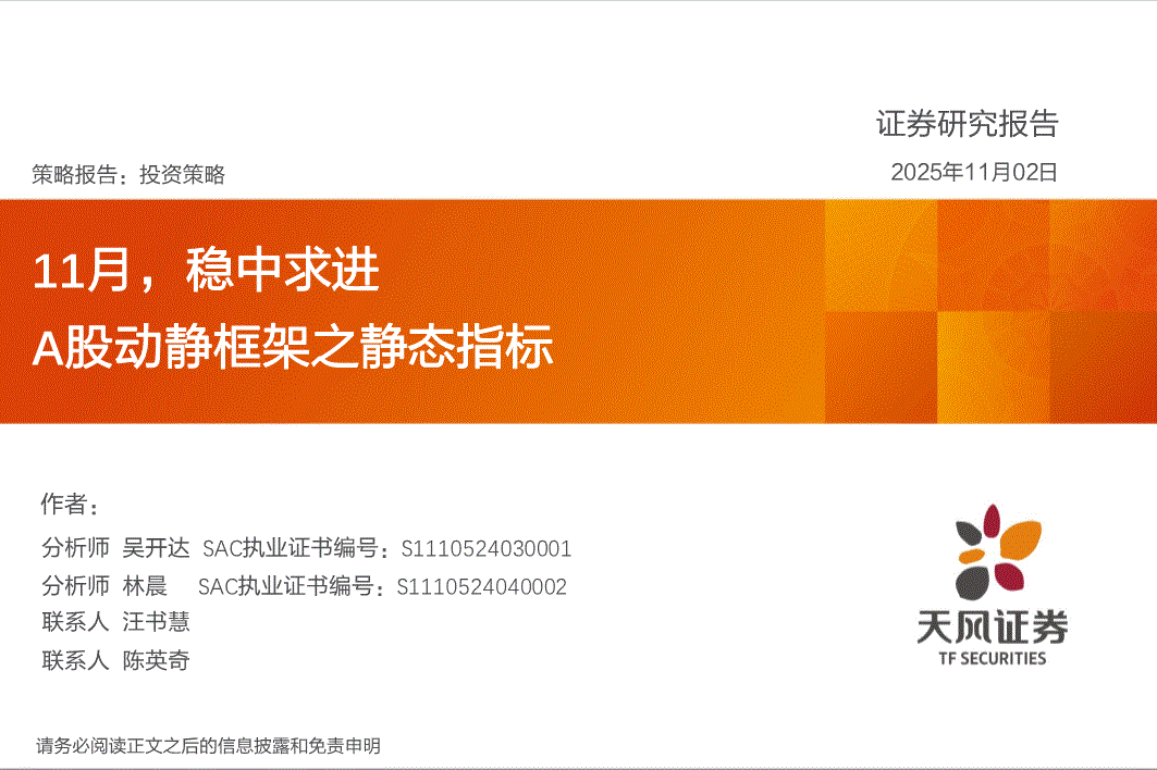 天风证券-A股动静框架之静态指标:11月,稳中求进-251102