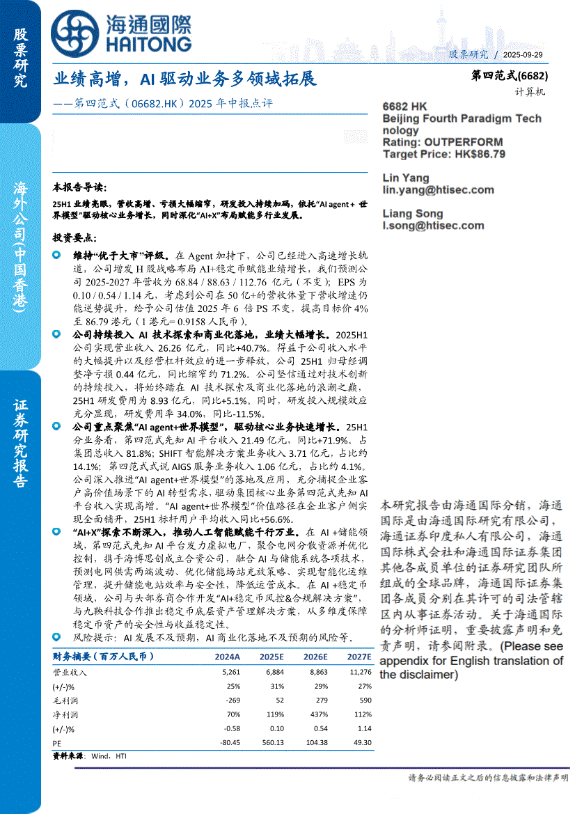 第四范式:海通国际-第四范式-6682.HK-2025年中报点评:业绩高增,AI驱动业务多领域拓展-250929